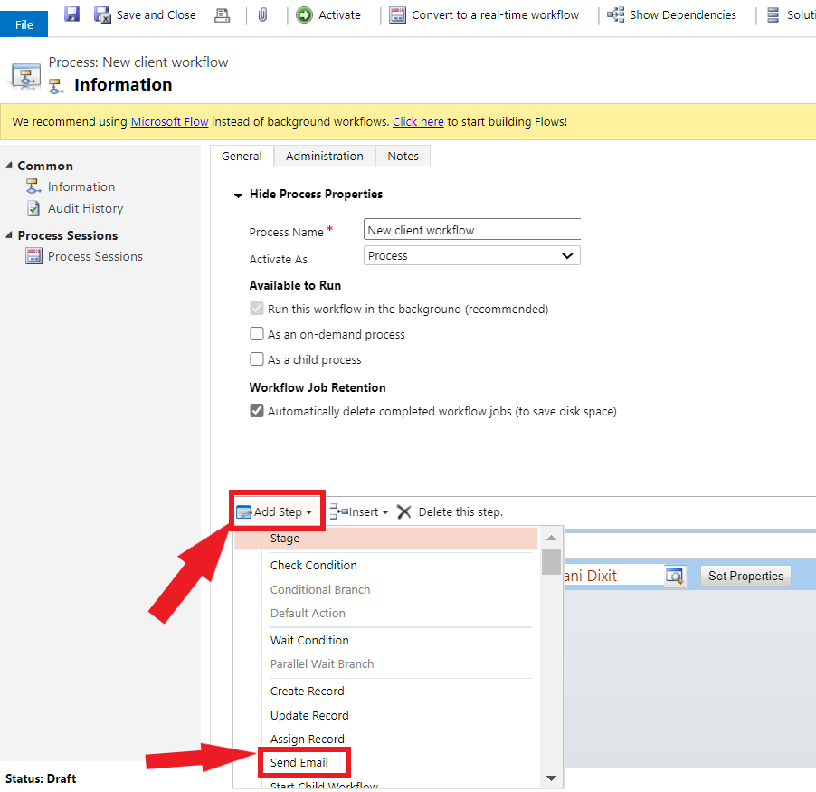 Step 7 - Add other step by clicking Add Step → Send Email. During this step, we will configure sending email to the client.