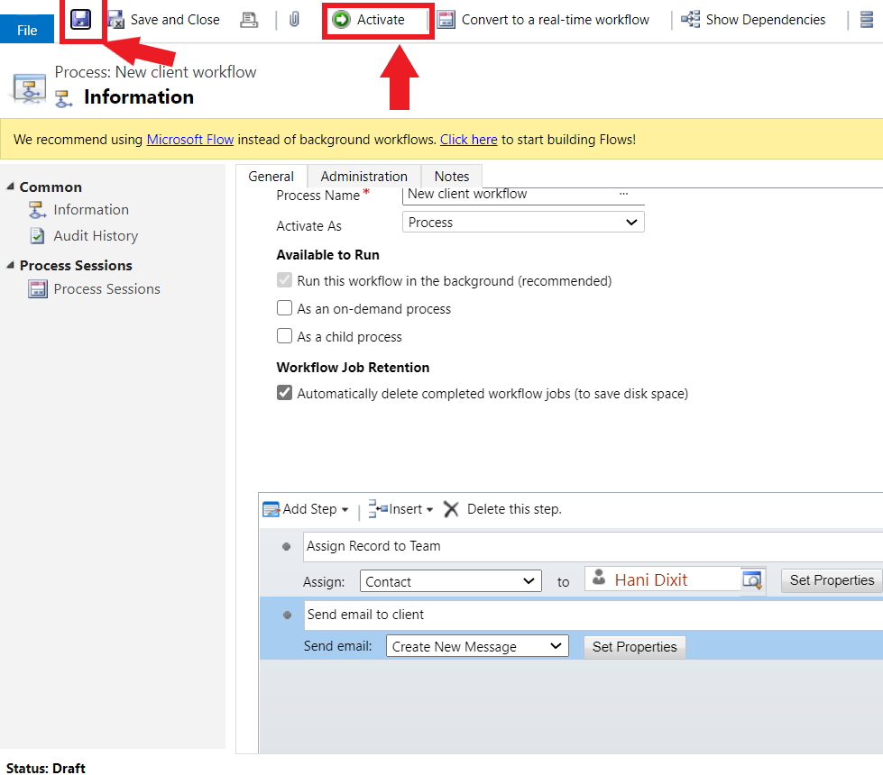 Process Name − New client workflow (This is any name that connected your method)