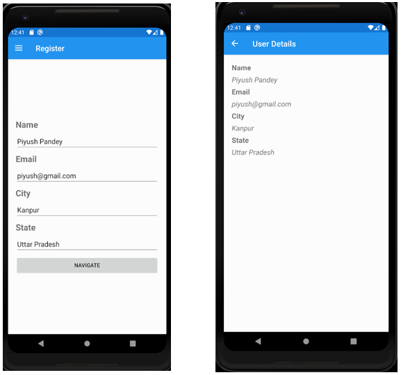 Our motive is to enter details on Page1 and navigate to Page2 using gotoAsync method,